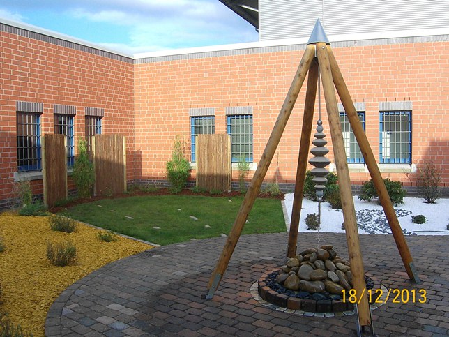 Sehnde. Im feierlichen Rahmen eröffnete die Leiterin der JVA Sehnde, Krimhild Timmermans-Eike, am vergangenen Donnerstag, 07.08.2014, einen neu gestalteten Innenhof der Anstalt, der künftig als „Garten der Bewegung“ von den Bediensteten z. B. während der Mittagspause oder für gemeinsame Veranstaltungen der einzelnen Abteilungen genutzt werden kann. Dabei unterstrich Sie die gelungene Umgestaltung des zuvor nicht genutzten Innenhofes und richtete einen ganz besonderen Dank an den evangelischen Seelsorger, Pastor Gerhard Dierks, der dieses im Rahmen seines Projekts „Gospelgarten“ überhaupt möglich gemacht hat. Gemeinsam mit den einzelnen Fachdiensten der Anstalt ist es ihm gelungen, einen freundlich gestalteten, von Gräsern dominierten und mit Gartenmobiliar ausgestatteten Begegnungsraum zu schaffen.