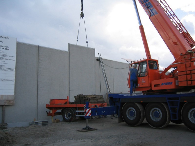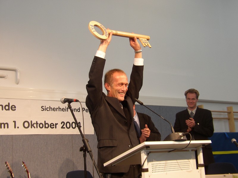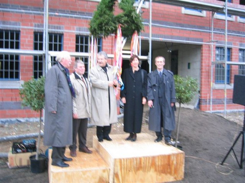 Justizvollzugsanstalt Sehnde - Das letzte Mauerteil wird eingesetzt am 20. August 2004 um 11.23 Uhr