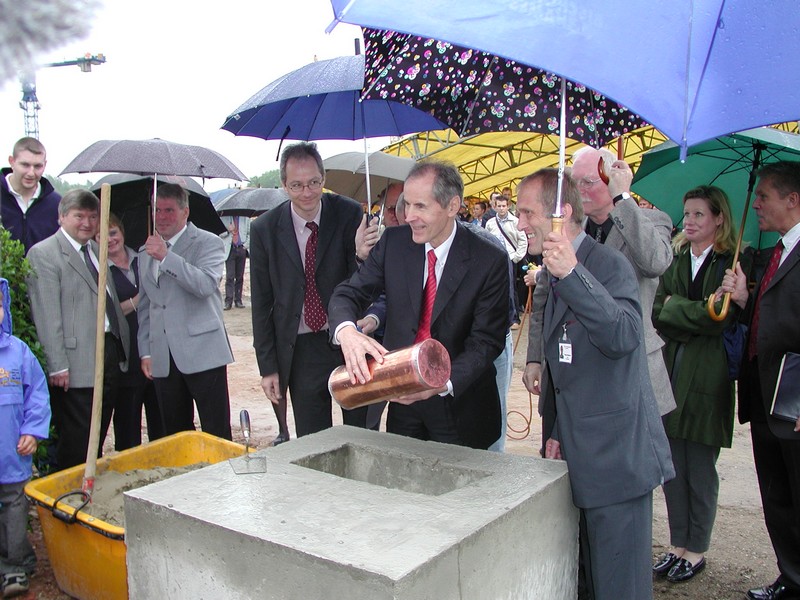 Justizvollzugsanstalt Sehnde - Grundsteinlegung am 23. Mai 2002 von links nach rechts: Herr Heitmann, Prof. Dr. Pfeiffer, Herr Lemme